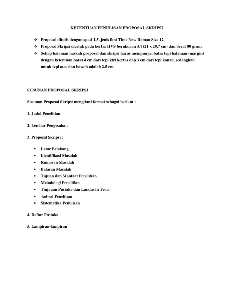 Manfaat Dalam Penyusunan Proposal Skripsi. Dalam penyusunan dan penulisan skripsi ini tidak terlepas dari bantuan, bimbingan serta dukungan dari berbagai pihak. Proposal skripsi merupakan laporan usulan penelitian tugas akhir mahasiswa (skripsi), dala sistematika penulisan proposal skripsi setiap kampus akan berbeda, hal tersebut agar tiap kampus memiliki ciri khas tersendiri dan juga mencegah adanya plagiat. Pedoman penyusunan penulisan proposal penelitian dan skripsi. Tujuan penyusunan proposal penelitian ini adalah sebagai syarat wajib dalam pengajuan penyusunan tugas akhir prodi teknik informatika universitas negeri banjarnegara. Semoga proposal skripsi ini dapat bermanfaat untuk semua orang terutama bagi ilmu keperawatan.