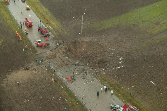 Buzau comemorare explozia de la mihailesti marturii supravietuitori. Explozia de la mihăilești este denumirea generică sub care este cunoscut unul din cele mai grave accidente produse pe șoselele din românia. Un accident rutier care a avut loc pe dn 73, pe raza comunei mihăești, a șocat zeci de trecători, cât și pe polițiștii care au intervenit imediat la fața locului. La fata locului au intervenit pompierii din cadrul garzii de interventie mihailesti. A truck loaded with ammonium nitrate rolled over and caught fire before exploding an hour later killing at least 18 people and injuring 13 others.
