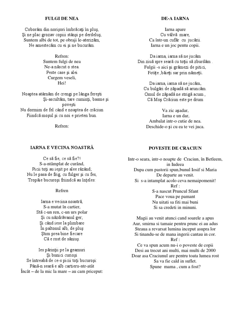 Foto LuminÄ De CrÄciun Serbarea Colegiului NaÅ£ional I M Clain Din Blaj Program Artistic Èi Mini Targ Cu Scop Caritabil Alba24 Source from : https://alba24.ro/foto-lumina-de-craciun-serbarea-colegiului-national-i-m-clain-din-blaj-program-artistic-si-mini-targ-cu-scop-caritabil-746097.html E valsul fulgilor de nea. Valsul fulgilor de nea muzica si versuri : Până când le cântă fals. Curg dinspre cer, cad alene din rai, in albul lor strai. E valsul fulgilor de nea, la marele iernii bal.