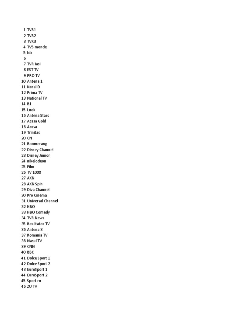Programele care apartin grilei must carry sunt programe care trebuie sa faca parte obligatoriu din grila de programe a operatorilor de televiziune prin cablu din din cate stiu telekom ii ridica pe satelit postul tv lui radu moraru. Grila de programe tv analogic vodafone iasi 05.09.2020 tvr1 tvr2 tvr3 pro tv antena 1 kanal d prima tv iasi national tv. Postul tv fără reclame,dedicat copiilor, oferă conținut amuzant pentru cei mai tineri telespectatori ai familiei, în timp ce nickelodeon aduce programe educaționale și distractive, dedicate publicului tânăr.