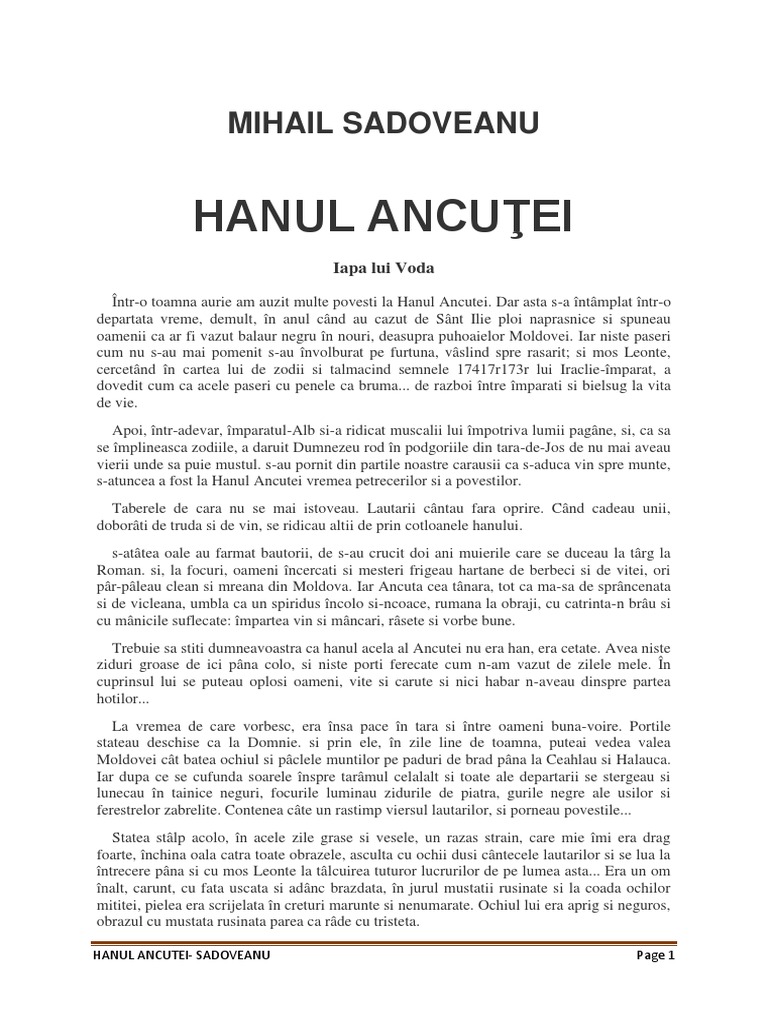 Prin frumusețea deosebită a limbii și vraja stilistică, observația realistă și pătrunzătoare de a surprinde destinele omenești. Открыть страницу «hanu ancutei» на facebook. Hanu ancuţei (novel) (ancuţa's inn), a 1928 novel by romanian author mihail sadoveanu.