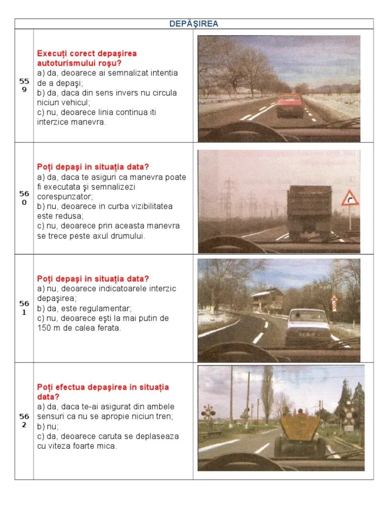 În intersecţia semnalizată cu indicatoare de prioritate; În ce situaţii nu vă este permisă depăşirea. Depasirea vehiculelor nu va este permisa: (1) se interzice depasirea vehiculelor: In ce situatie nu este permisa depasirea? Depășirea vehiculelor nu vă este permisă în intersecțiile cu circulație . Atunci când acesta este oprit, iar staţia nu este prevăzută cu refugiu pentru pietoni; · pe un drum in rampa, cand vizibilitatea este peste 50 m; B) în apropierea vârfurilor de rampa, când vizibilitatea este redusa sub . Bconform art.120, alin.1 din regulamentul rutier depasirea este interzisa doar in apropierea varfurilor de rampa unde vizibilitatea este sub 50m. În care dintre situaţii este permisă depăşirea? Prcum si in intersectiile cu circulatie . Pe un drum în rampă, când vizibilitatea este peste .